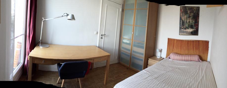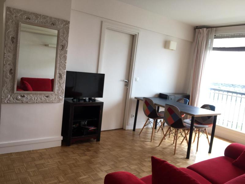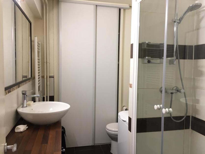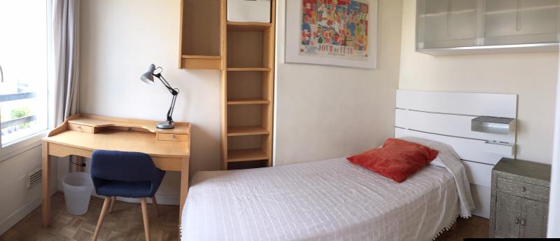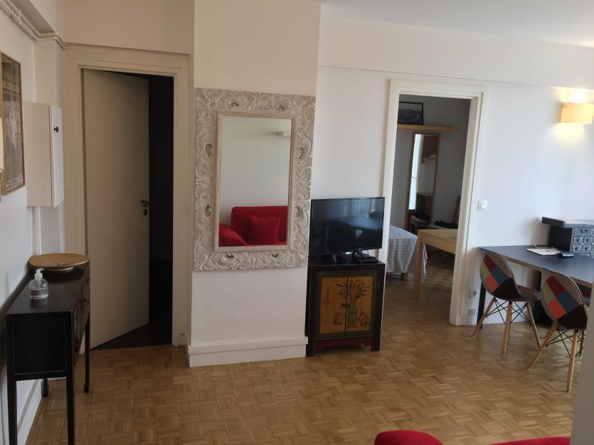 Appartement 3 pièces au 7ème étage avec vues, entièrement équipé. Grande chambre (lit 140), petite chambre (lit 90), salon avec canapé-lit. Idéal pour 2 étudiants ou un couple.