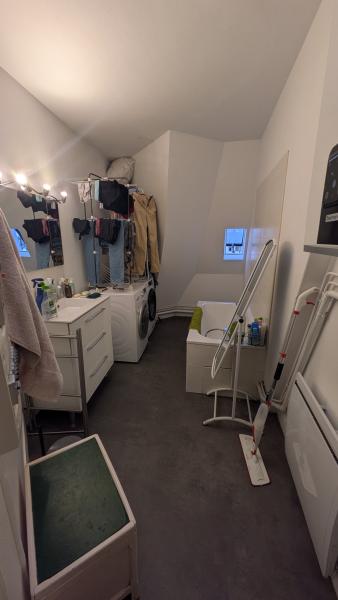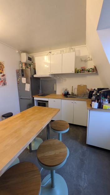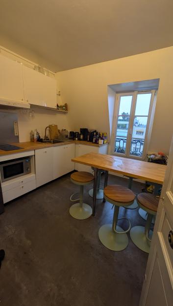 Chambre privative avec lavabo Partage de : - cuisine équipée avec lave vaiselle - salle de bains avec lave linge et seche linge WC commun Gardienne d’immeuble Toutes charges comprises (électricité, chauffage, eau froide & chaude, internet wifi)