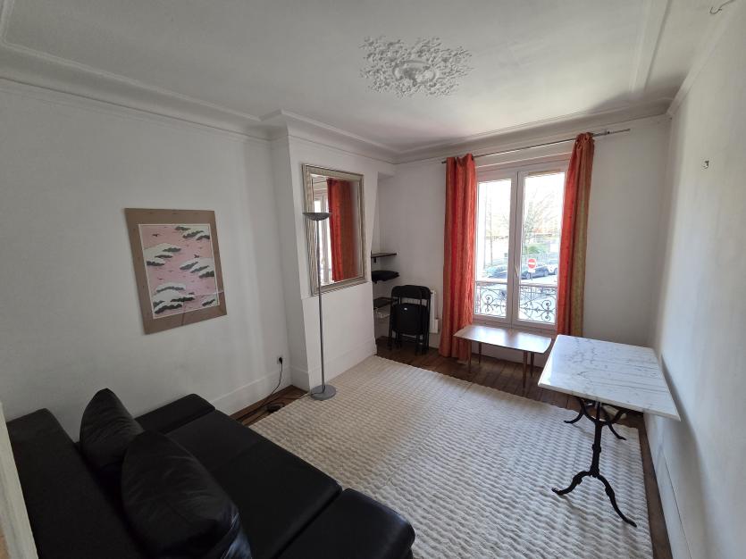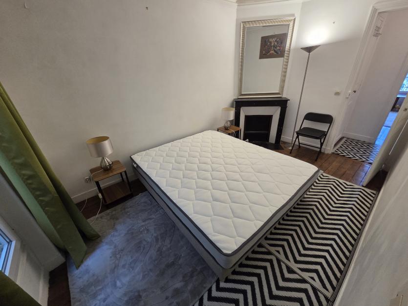 Appt 2 pièces (non fumeur) traversant cour/rue, 1er ét.asc, entrée, cuisine équipée, penderie,1 gde chambre lit 160x200, 2e chambre/salon (canapé-lit), salle d'eau; 3 radiateurs élect. literie/tapis neufs Direct Sc Po bus 83, campus Port-Royal Paris I