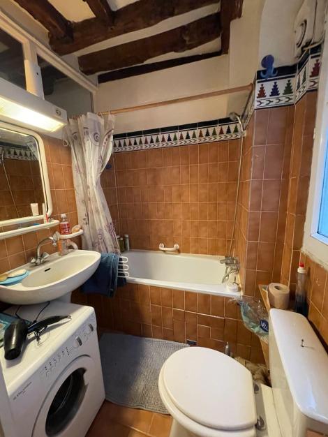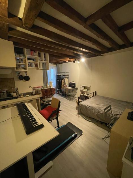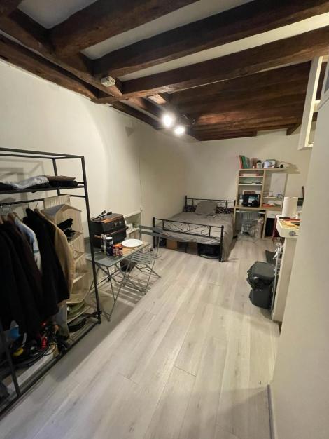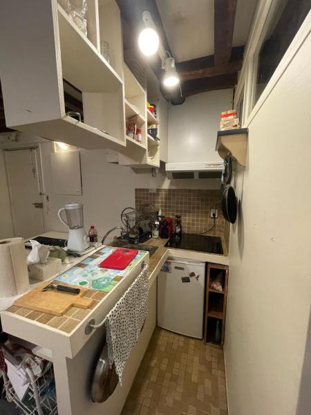 studio avec coin cuisine et salle de bains/WC en bon état donnant sur une cour calme dans un quartier doté de tout commerce et bien relié aux campus de Sc po. Machine à laver le linge