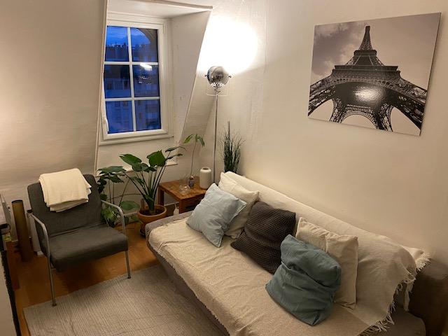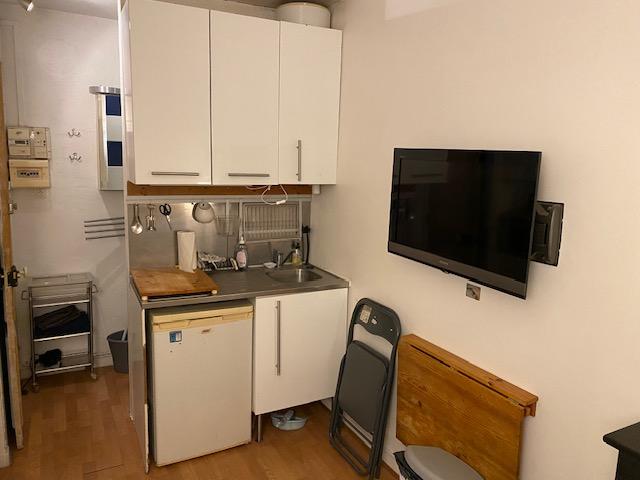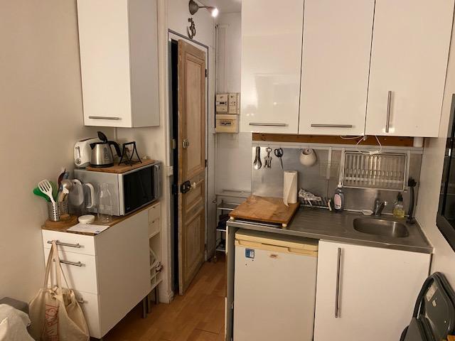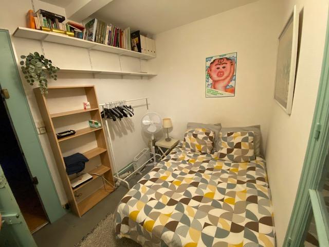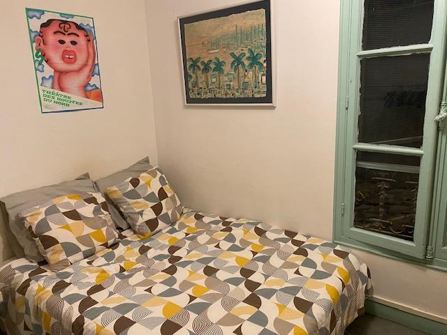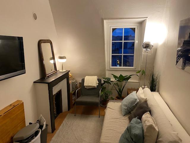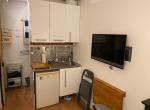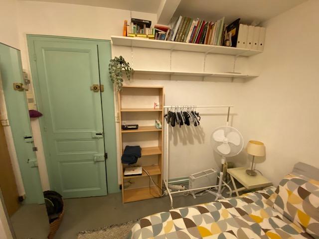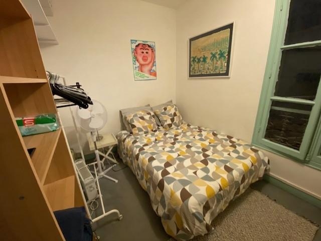 Composed of two rooms (chambres de bonne) separated by a common corridor. One room is a bedroom and the other one is a mini-living room (with kitchenette, table, TV and shower) It is available for 11 months minimum.